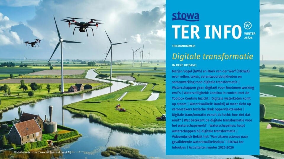 Marjan Vogel (hWh) en Mark van der Werf (STOWA) over rollen, taken, verantwoordelijkheden en samenwerking rond digitale transformatie | Waterschappen gaan digitaAI voor finetunen werking rwzi’s | Waterveiligheid: Continu in control met de Toolbox Continu Inzicht | Digitale waterketen komt op stoom | Waterkwaliteit: Dankzij AI meer zicht op veroorzakers toxische druk oppervlaktewater | Digitale transformatie vanuit de lucht: hoe ziet dat eruit? | Wat betekent de digitale transformatie voor het waterschapswerk? | Waterschapshuis helpt waterschappen bij digitale transformatie | Videorubriek Bekijk het! ‘Van citizen science naar gevalideerde waterkwaliteitsdata’ | STOWA ter Infootjes | Activiteiten winter 2025-2026