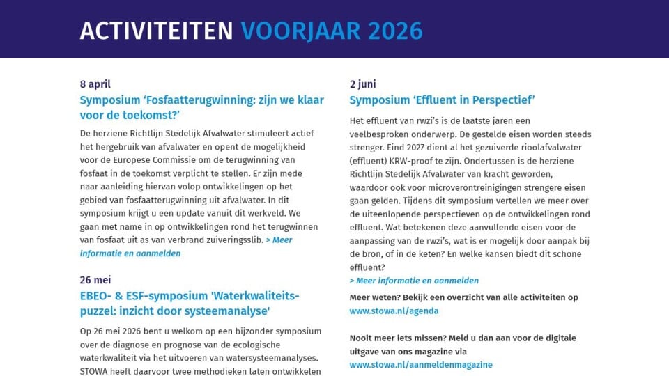 Meer weten? Bekijk een overzicht van alle activiteiten op www.stowa.nl/agenda